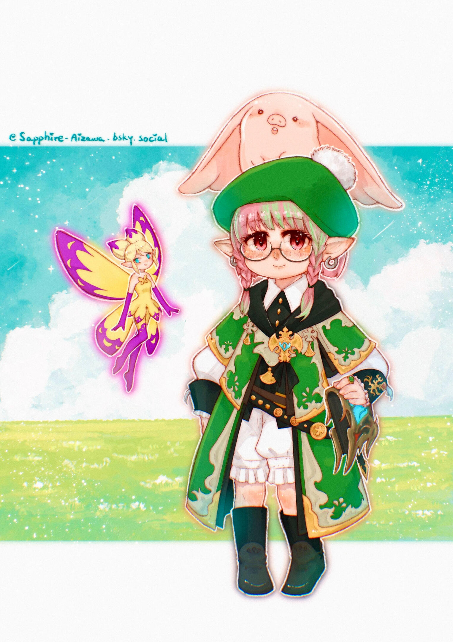 Pomitt was an underperforming marauder in Tomra; while she was forced to study martial arts, she had always been interested in pursuing arcane knowledge. One day, as she remained slacking off from her daily training in the village, the whole world was struck by a flood of light. Returning to her consciousness, Pomitt realized that she was in a totally different place, surrounded by creatures she didn't recognize. She would later discover that she was somehow teleported to somewhere called the Black Shroud from her own world. She was rescued by conjurers from Gridania, who kindly offered her a place at the Conjurers' Guild. Since then, Pomitt had been learning the art of conjury in Gridania, and later she set off to La Noscea and joined the Arcanists' Guild searching for further knowledge of this new world.Pomitt continued her training as a marauder when she found the Marauders' Guild in Limsa Lominsa. It was also then that Alka Zolka introduced her to the history of Nym. Pomitt became a student of Nymian history and specialized in healing as a Scholar.Pomitt continued to learn about this strange world, attempting to understand the mysterious teleportation and hoping to find her way back to Kholusia.